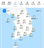 비 소식이 있고 오후에는 구름은 끼지만 기온이 10도 이상으로 올라가는군요.