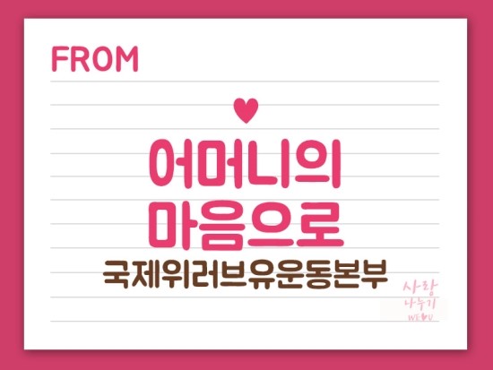 오늘 소개해 드리려 하는 국제위러브유운동본부가 바로 그곳이에요.