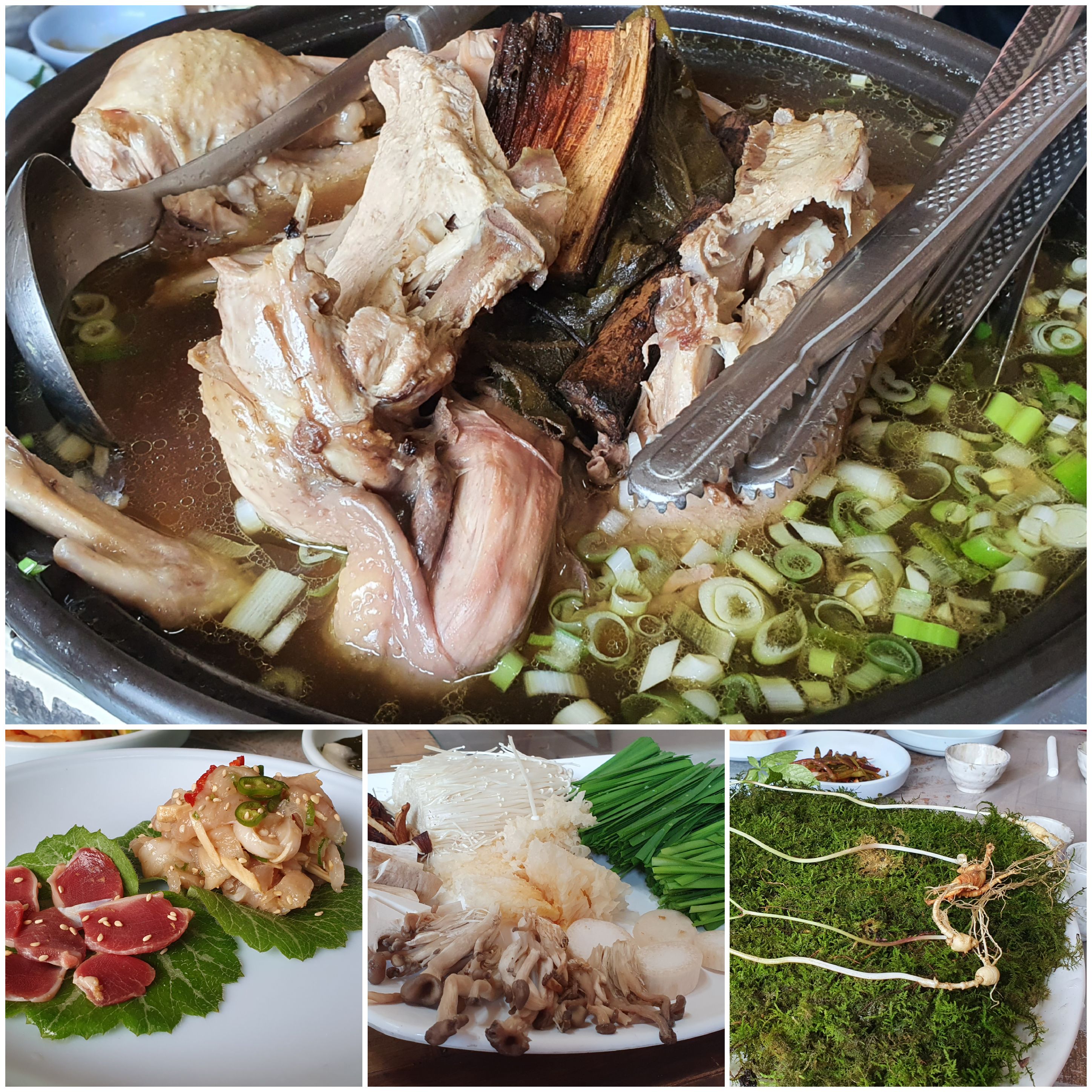 (산삼4뿌리 => 촌닭육회 => 산삼물 => 백숙 => 닭죽)