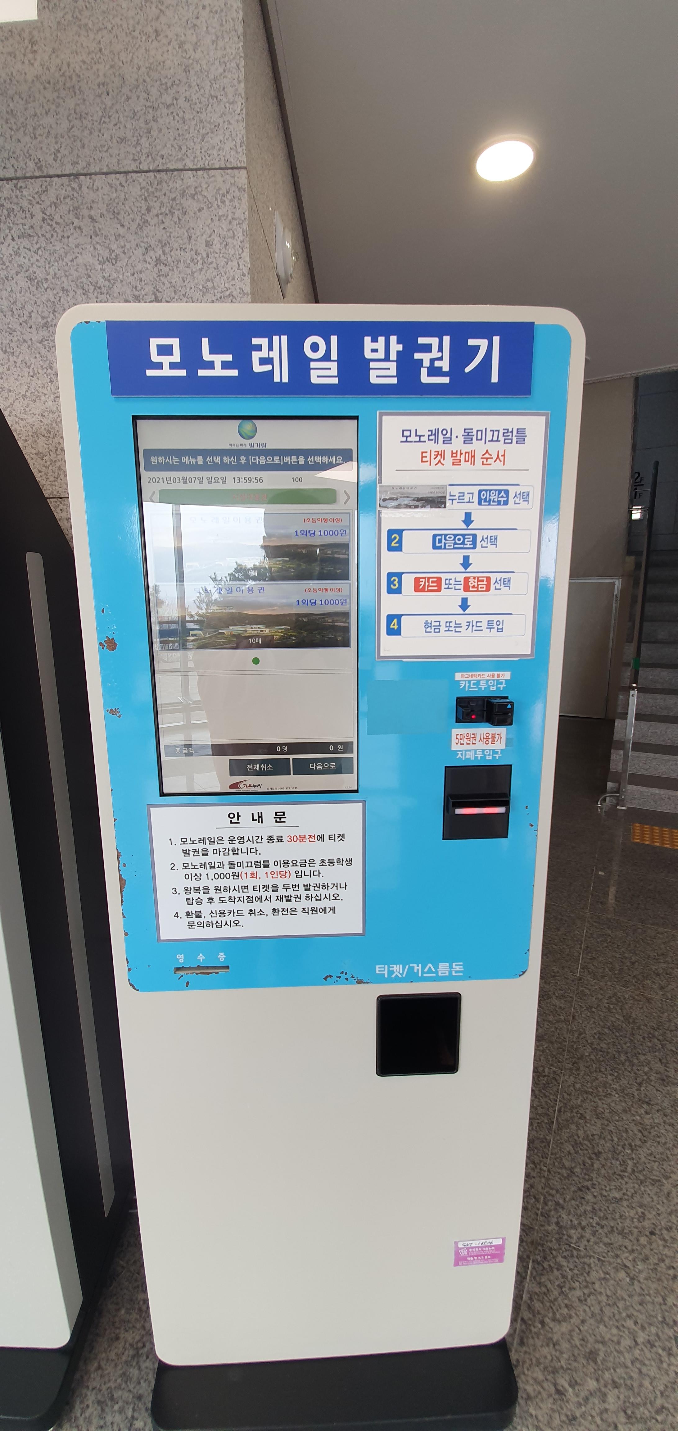모노레일의 표를 발급은 무인 발급기에서 구매할수 있는데요