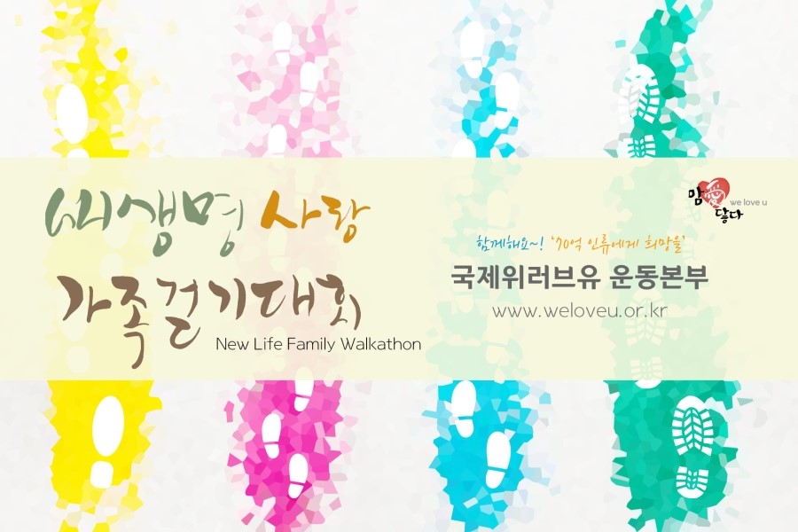 국제위러브유운동본부(회장 장길자)에서 개최하는 새생명 사랑 가족걷기대회는 그동안 함께 하지 못했던 또는 조금은 소홀할 수 있었던 가족이 함께 걷기 대회에 동참으로 소외된 계층과 희귀 질환으로 힘들어 하는 분들을 돕는 뜻 깊은 행사이랍니다.