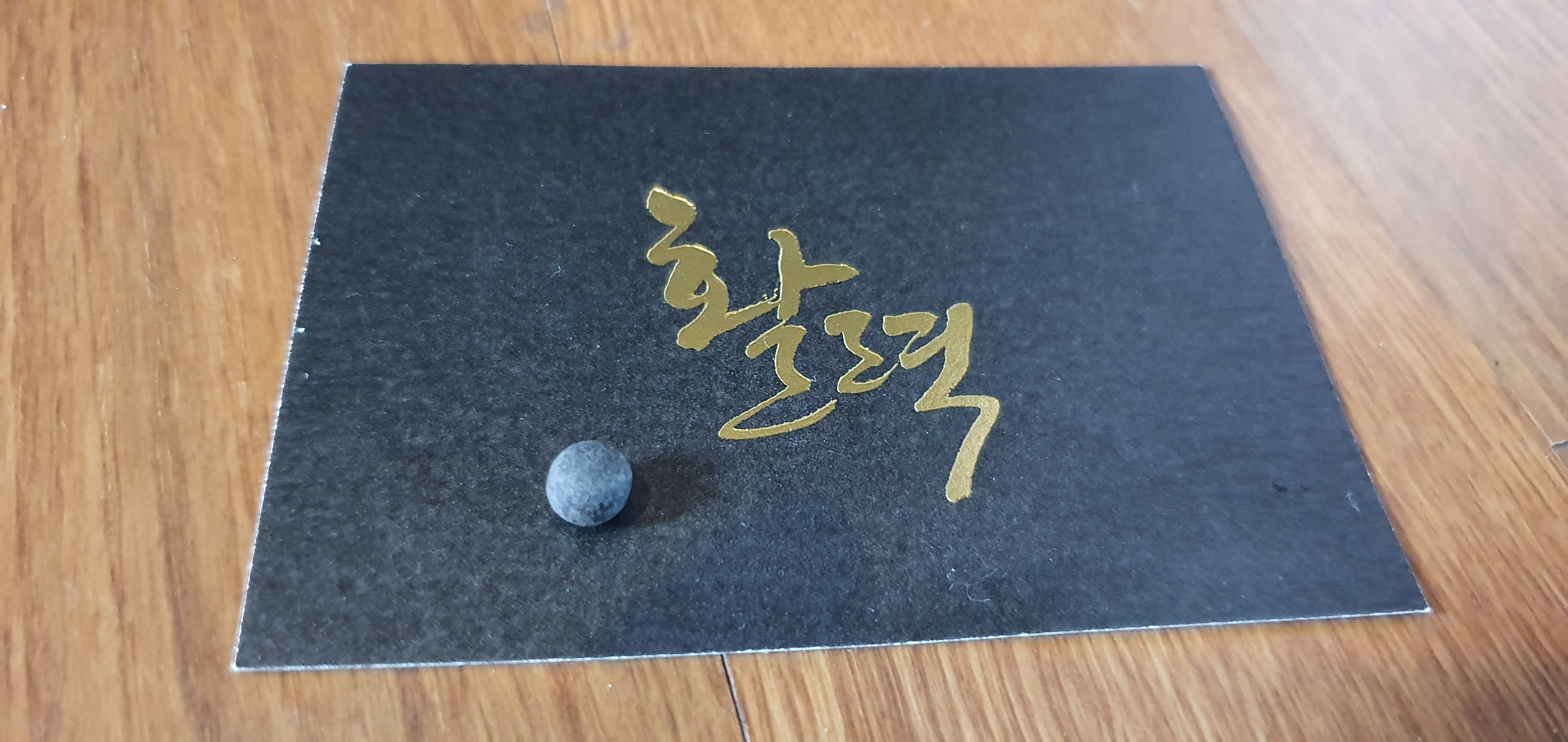 명함 크기의 종이에 비교해 보니 비비탄 알 보다 조금 더 작은거 같아요.