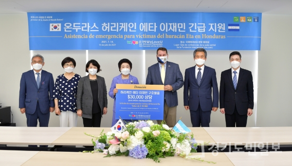 전달식에는 장길자 국제위러브유 회장과 비르힐리오 파레데스 트라페로 주한 온두라스 대사, 위러브유 관계자들이 참석했다. 코로나19 방역지침을 준수한 가운데 현지 피해 상황과 구체적인 지원 내용이 논의됐다.