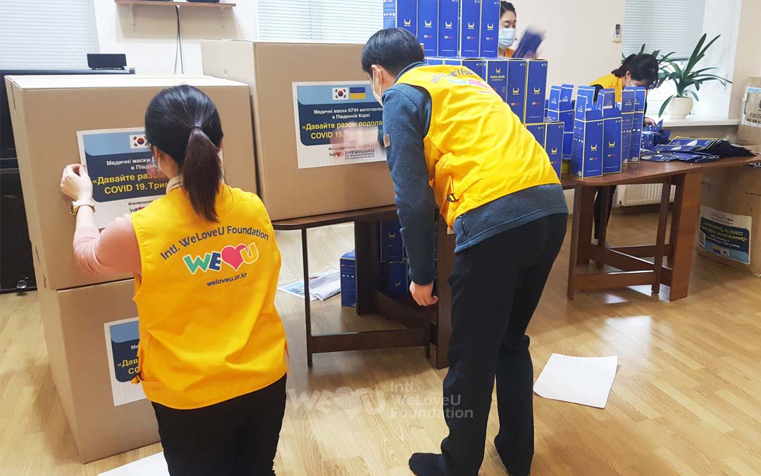 지난해 5월 확산세가 잠시 잦아들자 방역 완화 조치가 이뤄졌지만 얼마 못 가 확진자가 다시 증가했다. (재)국제WeLoveU(이하 위러브유)는 이때(5월)부터 주한 우크라이나 대사관과 긴밀히 협의하며 우크라이나를 도울 방법을 찾았고, 코로나19 지정 병원인 키예프 시립 4번 병원에 마스크 1만 장을 기증하기로 결정했다. 품질 및 착용감이 뛰어난 한국산 보건용 마스크를 선정해 직접 우크라이나에 보내기로 했다.